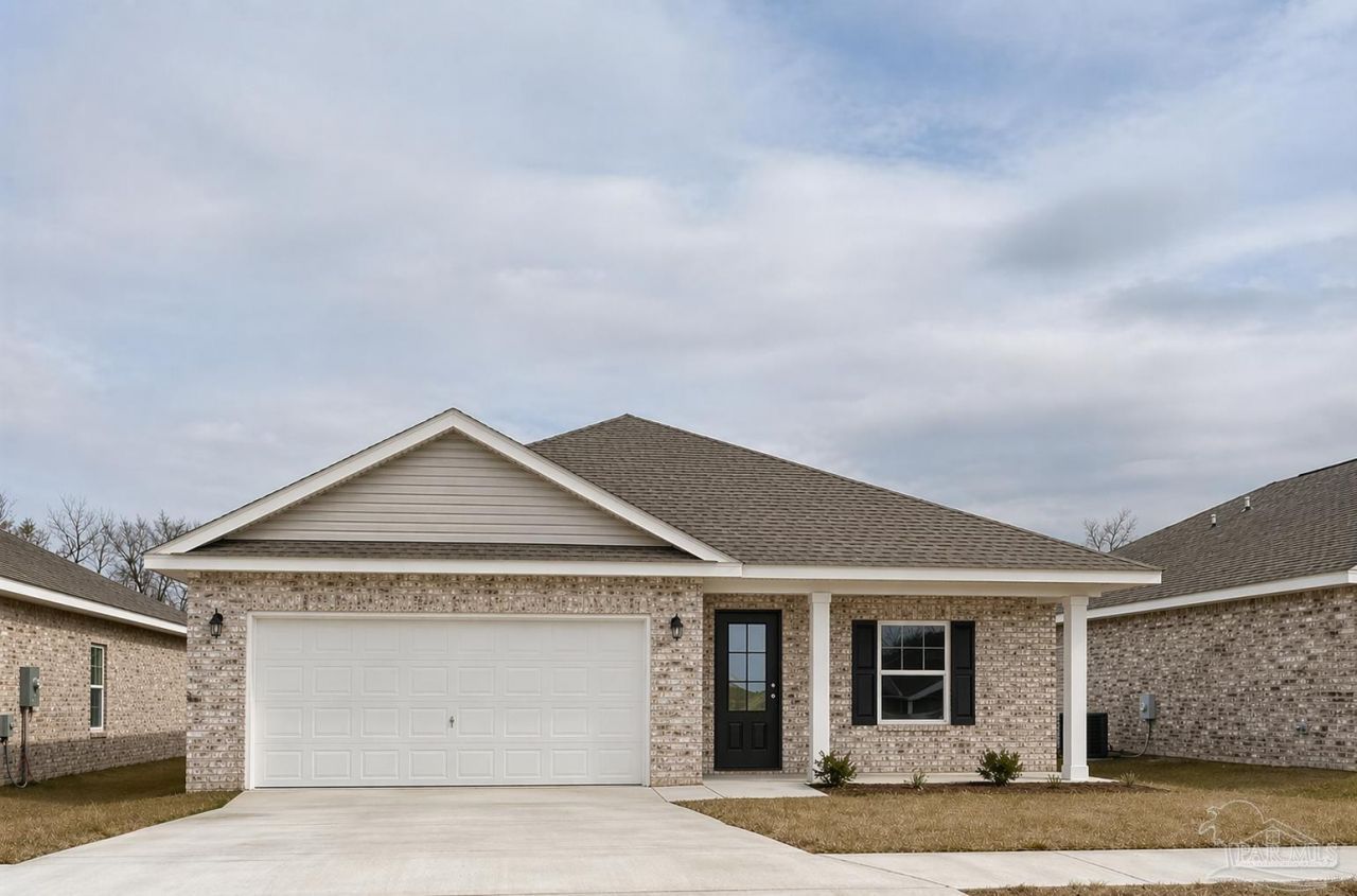 NEW CONSTRUCTION. Completion expected July 2026, in the prestigious Bentley Oaks Neighborhood. 3/2/2 1690 sq ft home. This home is 4 sides brick, FRONT PORCH, 9 ft ceilings, beveled Shaw, LVP flooring in all main areas, color is driftwood, carpet in bedrooms and closets. Upgrade selections will depend on stage of home. Carerra frost 3 cm quartz in wet areas. This beautiful home is located minutes from I-10, easy commute to bases, downtown and to the beach. The spacious Cypress plan has 3 bedrooms, and 2 baths. The design has an open kitchen with large prep island and the popular Shaker Style cabinets. the color is putty by Biship cabinets....read more